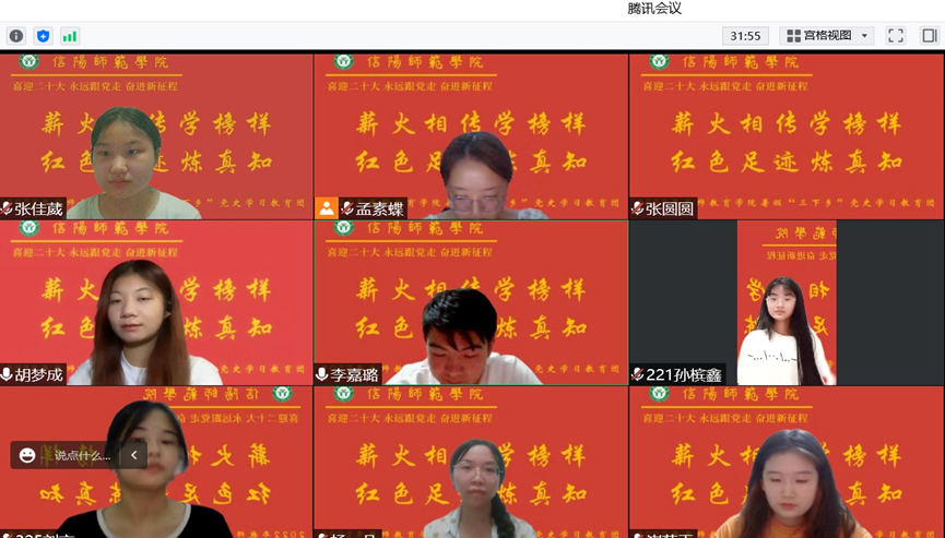 为贯彻落实习总书记“建团一百周年”重要讲话精神,自觉担当责任意识,切实提高我院学生的社会实践能力和基层工作经验、6月20日,“薪火相传学榜样,红色足迹炼真知”三下乡实践小队成立。经过长期积极协调讨论确定活动流程,在遵循各地疫情防控措施的前提下,暑假期间小队成员们于各自家乡开展丰富多样的实地调研活动,8月16日晚,实践小队开展线上总结会议,为本次三下乡活动画上圆满句号。