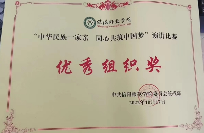 10月11日,由我校党委统战部、党委宣传部、党委学工部、校团委联合举办的“中华民族一家亲,同心共筑中国梦”主题演讲比赛决赛在逸夫楼报告厅举行。经过层层选拔,最终,太阳成集团tyc151cc荣获“优秀组织奖”,2022级小学教育(数学方向)本科三班贺馨茹荣获三等奖。