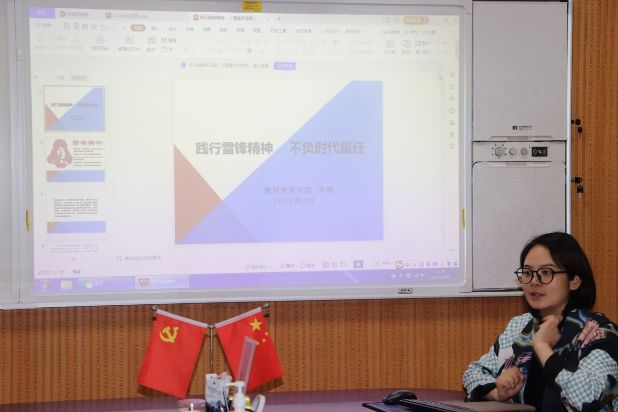 此次培训会的主题为“践行雷锋精神,不负时代重任”。培训会上,李杨首先带领大家学习习近平总书记关于雷锋精神的重要论述,并号召各班团支书深刻把握雷锋精神的时代内涵。接着,通过线上云游湖南雷锋纪念馆,让学生们沉浸式的了解雷锋同志的生平事迹。最后,与会人员齐唱“学习雷锋好榜样”歌曲,通过重温经典歌曲,使学生们深刻的感受到雷锋身上所展现出来的大爱胸怀、忘我精神、进取锐气。