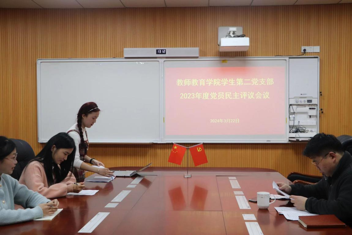 评议会议上,杨芳宣布了此次会议的基本流程并清点了到会人数。姚雨承宣读了会议精神,强调民主评议党员包括了评议党员在政治、思想、作风、纪律、党性观念等方面的现实表现,是贯彻落实全面从严治党要求,保持党员队伍先进性和纯洁性的重要组织形式。随后,姚雨承代表支部委员会向全体党员进行述职,报告了2023年学生党支部工作开展情况。民主评议阶段,学生党员依次发言,对照党员标准、入党誓词和评议内容,联系个人思想、工作和学习实际,实事求是的进行党性分析,分别展开个人自评,党员互评、民主测评。其中,尚佳慧总结了自己一年来学习和生活中的优点与不足,她表示在接下来的学习中要学习更多理论知识,深入领会,不断提高自身综合素质。李茜从思想和作风两个方面对自己进行评议,她指出,虽然自己有一定的进步与成绩,但是不够重视细节,应变能力较差,在之后的学习和生活中会树立坚定的理想信念,严格要求自己,不断增强党性修养。最后,支部书记姚雨承对本次评议会议进行总结,他强调党员同志要加强对党员标准,党性修养的学习,通过学习和评议进一步提高党员素质修养,进一步严格党员管理监督,进一步促进党支部战斗堡垒作用和党员先锋模范作用的发挥。