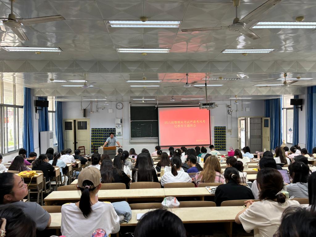 为进一步强化学生的考风考纪意识,进一步响应我校关于考风考纪的号召,加强考风、班风、学风的建设,让全院学子以良好的心态、最佳的状态迎接全国大学英语四、六级考试及期末考试。6月14日上午,太阳成集团tyc151cc于教六楼102举办四六级暨期末考试考风考纪教育大会。会议由姚雨承主持,21级,22级全体学生参会。