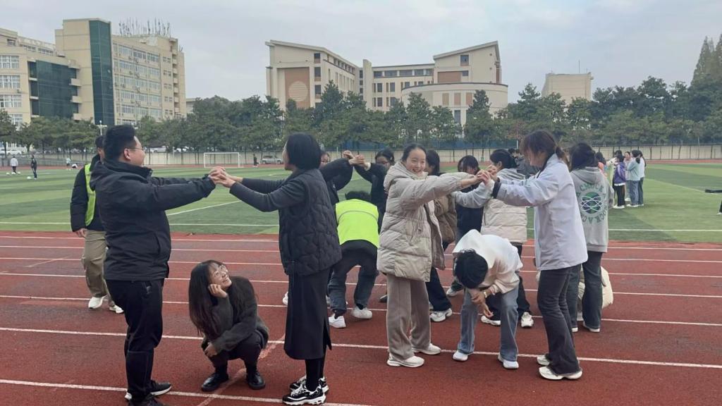 活动在轻松愉快的“桃花朵朵开”游戏中拉开帷幕,随着工作者口令,参与者们迅速抱团,欢声笑语中拉近了彼此距离,为团队协作热身。“森林着火”则为活动增添了一抹活泼亮色,队员们分别扮演松鼠和大树,在工作者的口令变化下,迅速变换角色并寻找新的“家园”,充分锻炼了大家的反应能力和团队成员间的动态适应能力。老师们也融入其中,现场充满了欢声笑语。“旱地龙舟”无疑是活动的高潮部分,各小组队员骑乘充气“龙舟”,齐声喊着口号,齐心协力迈向终点。拔河项目更是体现了团队精神,双方队员紧握绳索,脚蹬地面,身体后仰,齐声呐喊助威,每一次的奋力拉拽,都是团队力量的凝聚,每一个坚定的眼神,都传递着不放弃的信念。活动在欢乐和谐的氛围中落下帷幕,同学们纷纷表示在各个项目中深刻体会到了团队合作的力量,也在挑战中突破了自己,收获了成长。