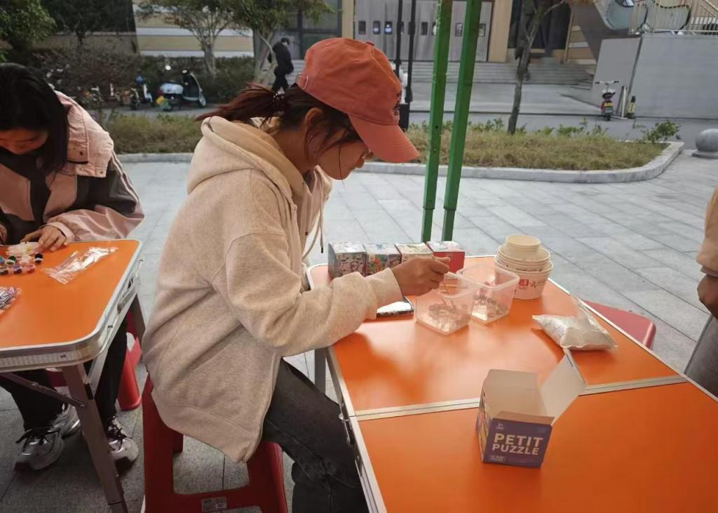 在“拼图大挑战”环节,同学们随机两两分组进行友谊赛,工作人员将一幅幅精美的拼图拆分成众多小块,同学们需全神贯注、眼疾手快,依据脑海中的图像构思,与队友紧密协作,争分夺秒地拼凑还原,极大地锻炼了同学们的逻辑思维能力,增强了同学们的团队合作意识。