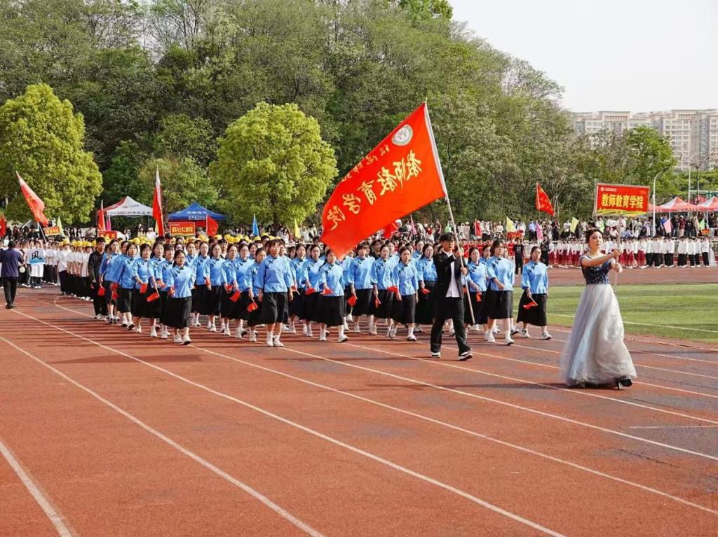 开幕式上,伴随着激昂的运动员进行曲,学院学生迈着有力的步伐入场。他们步伐整齐、口号响亮,精神抖擞地走过主席台,充分展现出当代青少年朝气蓬勃的精神风貌,他们以轻盈舞步演绎五四时期青年的热血与理想,以整齐划一的动作组成苍劲有力的“师”字造型,寓意青年学子传承师者精神、赓续时代薪火。行列式结束后,校领导发表了鼓舞人心的开幕致辞,鼓励运动员们赛出风格、赛出水平,将拼搏精神融入到每一个比赛项目中,并宣布运动会正式开幕。