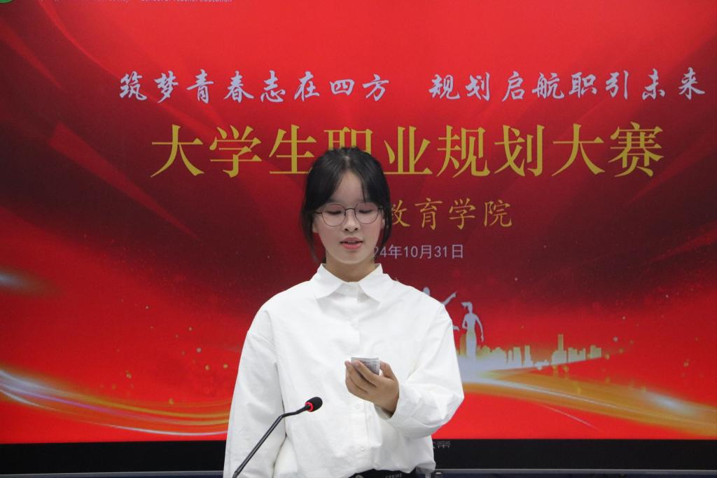 此次“筑梦青春志在四方”大学生职业生涯规划大赛顺利举办,不仅引导同学们提前思考、规划未来,使同学们对职业发展有了更深的认识,也让同学们获得了更多的自信心。下一步,我院将继续贯彻落实“立德树人”根本任务,厚植家国情怀,把我院学生培养成有理想信念、有道德情操、有扎实学识、有仁爱之心的“四有”好老师。
