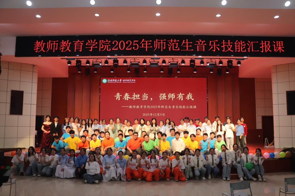 从乐器演奏到歌舞表演,从情景剧到音乐小品,师范生们以扎实的艺术技能、饱满的情感表达,展现了“准教师”的综合素养,也让现场师生见证了青春与热爱的碰撞。