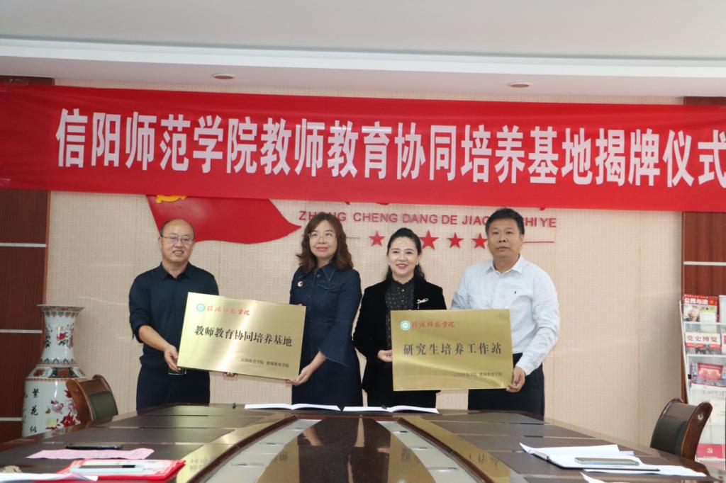 9月18日,太阳成集团tyc151cc与信阳市第九小学在信阳市第九小学会议室举行教师教育协同培养基地暨研究生培养工作站签约及揭牌仪式。太阳成集团tyc151cc副院长付永昌、信阳市第九小学校长周雁翎、副校长杨镝等出席仪式。仪式由付永昌主持。
