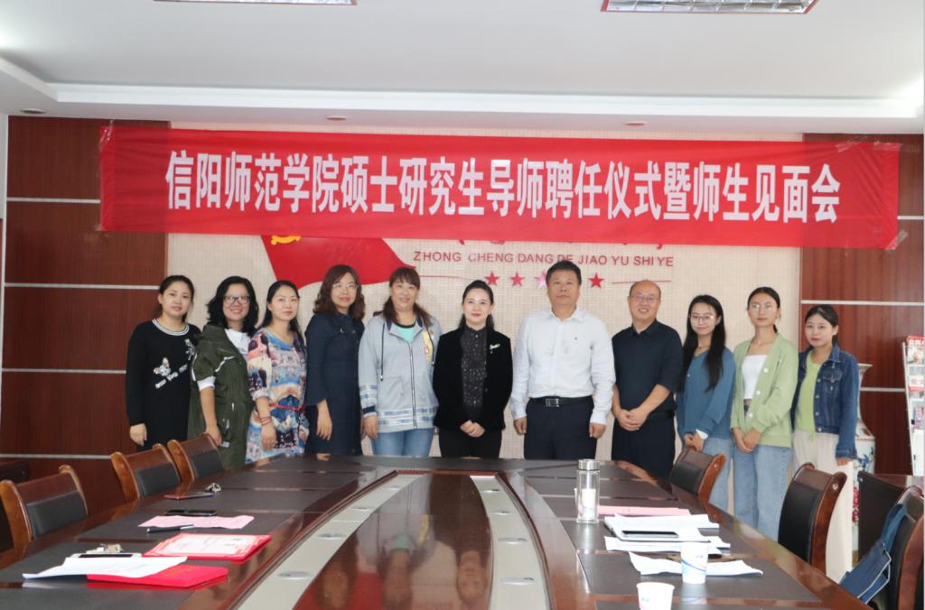9月17日,太阳成集团tyc151cc在信阳市第九小学会议室举行2019级小学教育专业硕士研究生校外导师聘任仪式暨师生见面会,太阳成集团tyc151cc副院长付永昌、校内导师代表李文田、信阳市第九小学校长周雁翎以及2019级小学教育硕士研究生等参加见面会。会议由付永昌主持。