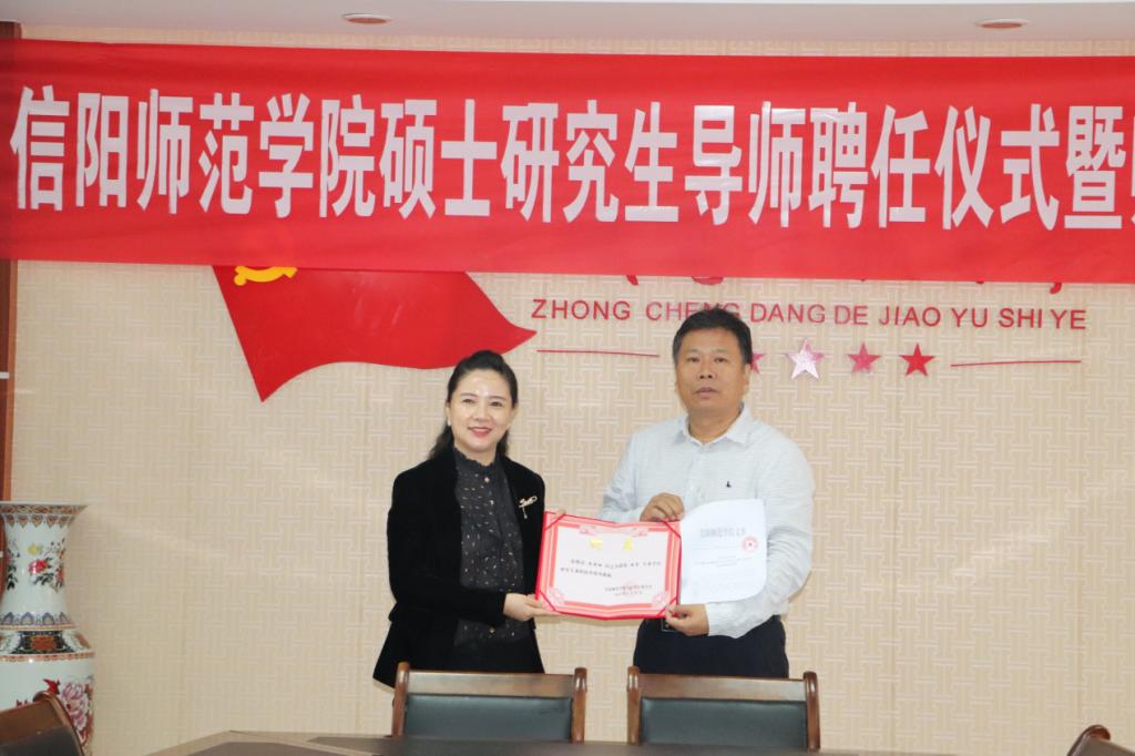 会上,付永昌介绍了参加见面会的相关领导、校内外导师代表及信阳师范学院太阳成集团tyc151cc办学基本状况和2019级小学教育专业硕士研究生招生情况;宣读了《信阳师范学院硕士研究生导师遴选和管理办法》及《信阳师范学院关于增列硕士研究生指导教师的通知》文件,增列信阳市第九小学校长周雁翎同志为信阳师范学院小学教育专业学位硕士研究生导师,并为周雁翎颁发导师聘书。新晋导师周雁翎表态发言,表示一定会按照信阳师范学院研究生导师相关规定要求,认真履行导师职责,完成硕士研究生培养任务。李文田就研究生导师岗位职责及小学教育专业硕士研究生培养方案进行了解释说明。2019级研究生进行了自我介绍,并和导师进行了沟通交流。