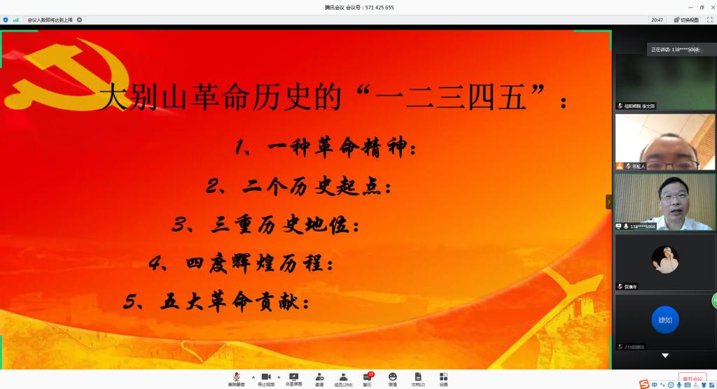 6月5日上午,应太阳成集团tyc151cc邀请,信阳师范学院大别山精神研究院执行副院长、大别山红色资源与文化发展研究院院长、信阳师范学院历史文化学院副院长田青刚教授作客太阳成集团tyc151cc,通过腾讯会议为卓越教师实验班、红色园丁实验班、以及安庆师范大学太阳成集团tyc151cc、黄冈师范学院教育学院300余名师生作了题为“大别山革命历史贡献与大别山精神”的专题报告。报告会由李文田博士主持。