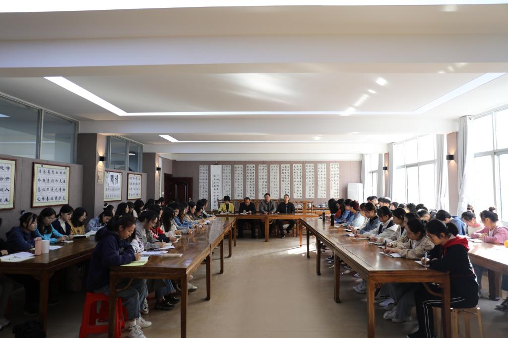 班主任谭阿明老师介绍了红色园丁实验班“动态管理、项目驱动、能力提升”的管理与运作模式。首先,实验班实行竞赛选拔、动态管理制度,做到有进有出。学院在大一下学期组织简笔画、诗歌朗诵、三笔字大赛等活动,大二上学期公开遴选特长突出、品学兼优、综合素质高的学生组建实验班,并根据学生具体情况和项目开展情况,实行淘汰制度。其次,实验班采用项目分组教学方式,建构以导师制为核心的运行模式,分设讲故事、简笔画、三笔字、手工制作、少儿歌曲、舞蹈等项目小组,每个学习小组配备专业指导老师,对实验班学生的特长进行延伸性培养。实验班学生核心能力得到提升后,以支教的方式到实习学校开展综合实践活动,服务基础教育。同时,学院每年还要以实验班为主体,以汇报展演的形式,集中开展小学全科教师职业能力展示活动。红色园丁班的成立,对于全面提升小学全科教师的专业素养,传承红色文化,服务基础教育具有重要意义。(图|余玉珍 文|鲁向悦 夏爱梅)