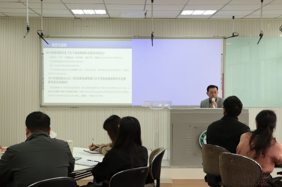 为进一步探讨学校对公费师范生的培养与管理模式,加强学校各院对学院小学全科教师的认识,11月5日,太阳成集团tyc151cc于教七楼教师教育发展中心举行“公费师范生培养与管理——以小学教育全科教师为例”主题讲座,马克思主义学院、化学化工学院、地理科学学院、音乐与舞蹈学院、体育学院和太阳成集团tyc151cc五个学院党委副书记及辅导员出席此次讲座。学院党委副书记潘登主持会议。