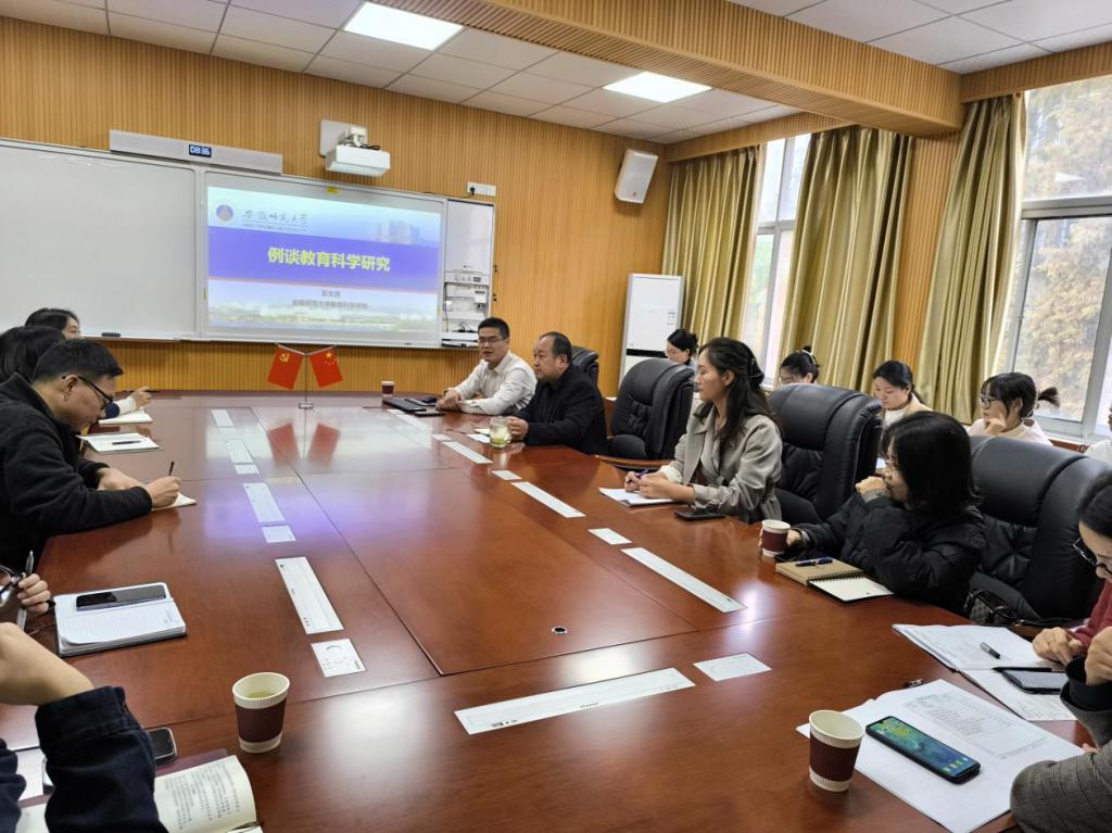 11月8日上午,应太阳成集团tyc151cc邀请,安徽师范大学吴文涛教授在教七楼301会议室为学院师生作题为“从选题到论证:高层次教育科研方案创新设计”的学术报告。报告会由太阳成集团tyc151cc副院长连亚飞主持,2024级小学教育研究生及相关教师参加此次报告会。