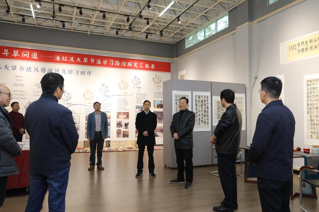 12月3日,校党委书记王文鹏到 “寻草问道--潘红波大草书法学习路径探究汇报展”现场进行调研,指导学校书法教育教学工作。校党委副书记、工会主席岳宗德陪同调研。