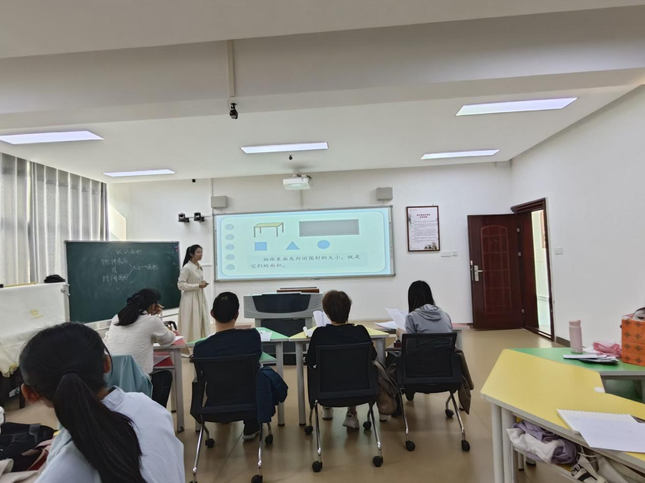 5月17日上午,suncitygroup太阳成集团2025年教育硕士研究生教学技能大赛决赛正式举行,决赛包括模拟授课和现场答辩两个环节。我院2024级小学教育硕士研究生郭金月同学比赛选题为《圆柱的表面积》,她以清晰的教学逻辑、生动的师生互动及创新的教具应用等优异表现,荣获决赛三等奖。