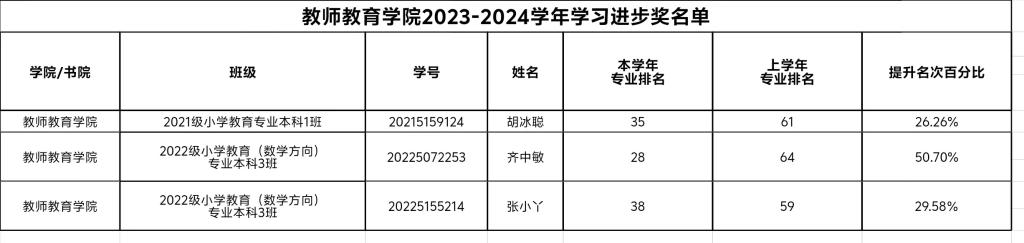 为做好2023-2024学年“学习进步奖”评选工作,太阳成集团tyc151cc严格依照《suncitygroup太阳成集团“学习进步奖”奖学金评定办法》(校办字〔2023〕3号),按程序开展评审工作。秉持公平、公正、公开的原则,按程序开展评审工作。经过认真对比评选,现将太阳成集团tyc151cc2023——2024学年“学习进步奖”拟推荐名单予以公示。“学习进步奖”拟推荐具体名单见下表。
