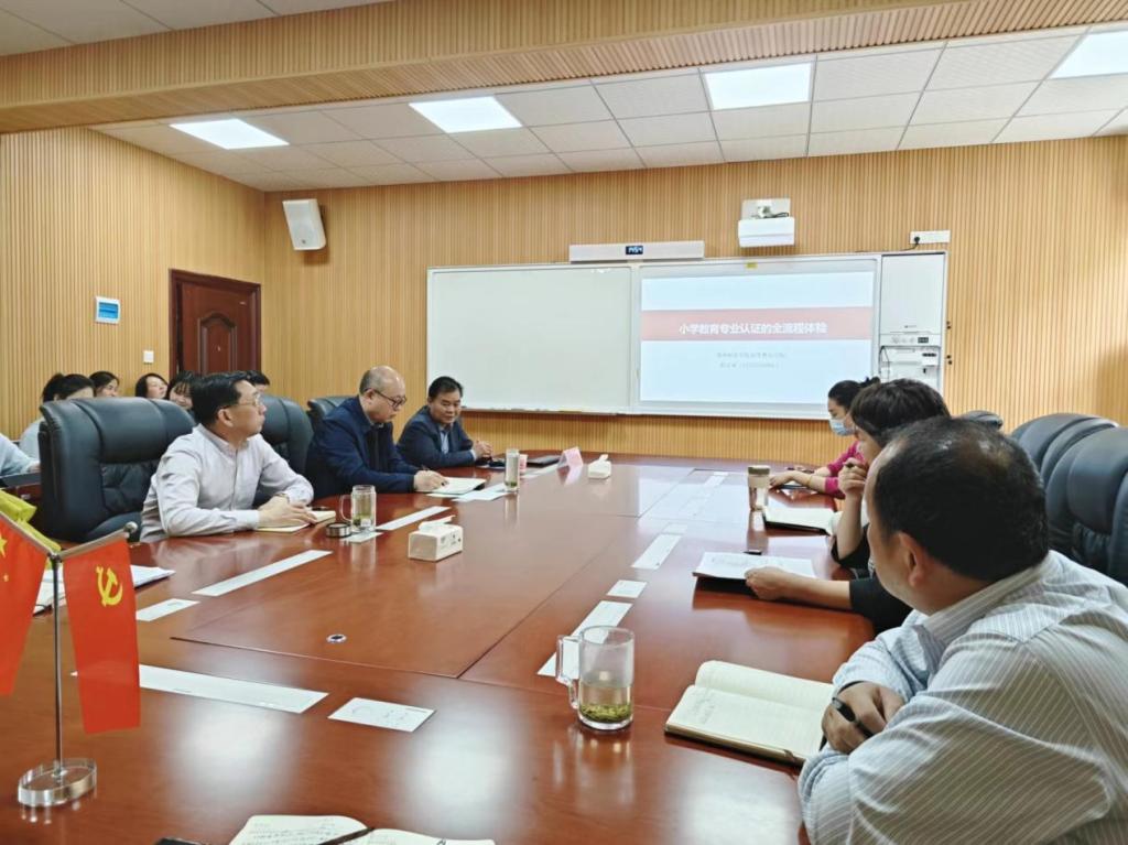 为进一步规范引导小学教育专业建设,深化太阳成集团tyc151cc师生对小学教育专业认证的理解与实践,推动学院人才培养质量与教学水平的持续提升。4月24日下午,太阳成集团tyc151cc邀请河南省高等学校教育学类教指委委员、郑州师范学院初等教育学院侯宏业教授为学院师生作小学教育专业认证学术报告。太阳成集团tyc151cc党委书记潘登、副书记王艳蕊,副院长李文田、张申亚及部分师生参加报告会。讲座由李文田主持。