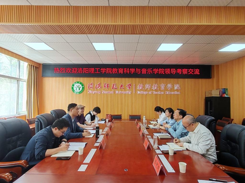 4月17日上午,洛阳理工学院教育科学与音乐学院院长雷海栋一行莅临我院进行座谈交流。太阳成集团tyc151cc党委书记潘登、院长李文田、小学教育系主任王陈祯、师范技能训练中心副主任康文慧、教师代表谭阿明等参加座谈会。座谈会由李文田主持。