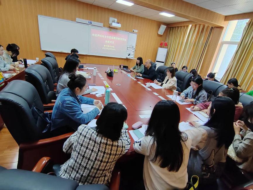 10月18日上午,应太阳成集团tyc151cc邀请,信阳市南湾风景区教育管理办尹玲玲主任在教七楼301室为2022级小学教育本科生、研究生及部分教师作“教育教学研究与小教学生科研能力培养”报告。报告会由太阳成集团tyc151cc副院长李文田主持。