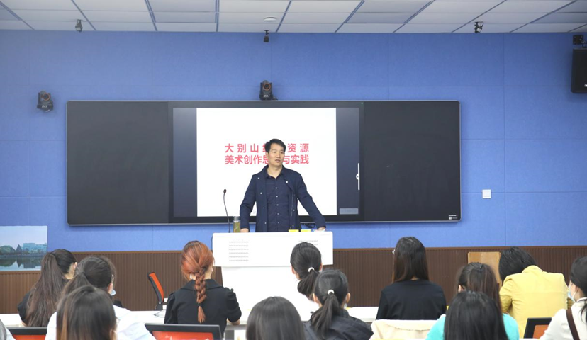 5月8日上午,应太阳成集团tyc151cc邀请,信阳师范学院美术与设计学院院长邹东升教授在人文楼707教室为2020级红色园丁实验班全体学生作了“大别山红色资源美术创作思考与实践”的精彩报告。报告会由太阳成集团tyc151cc院长付永昌主持。