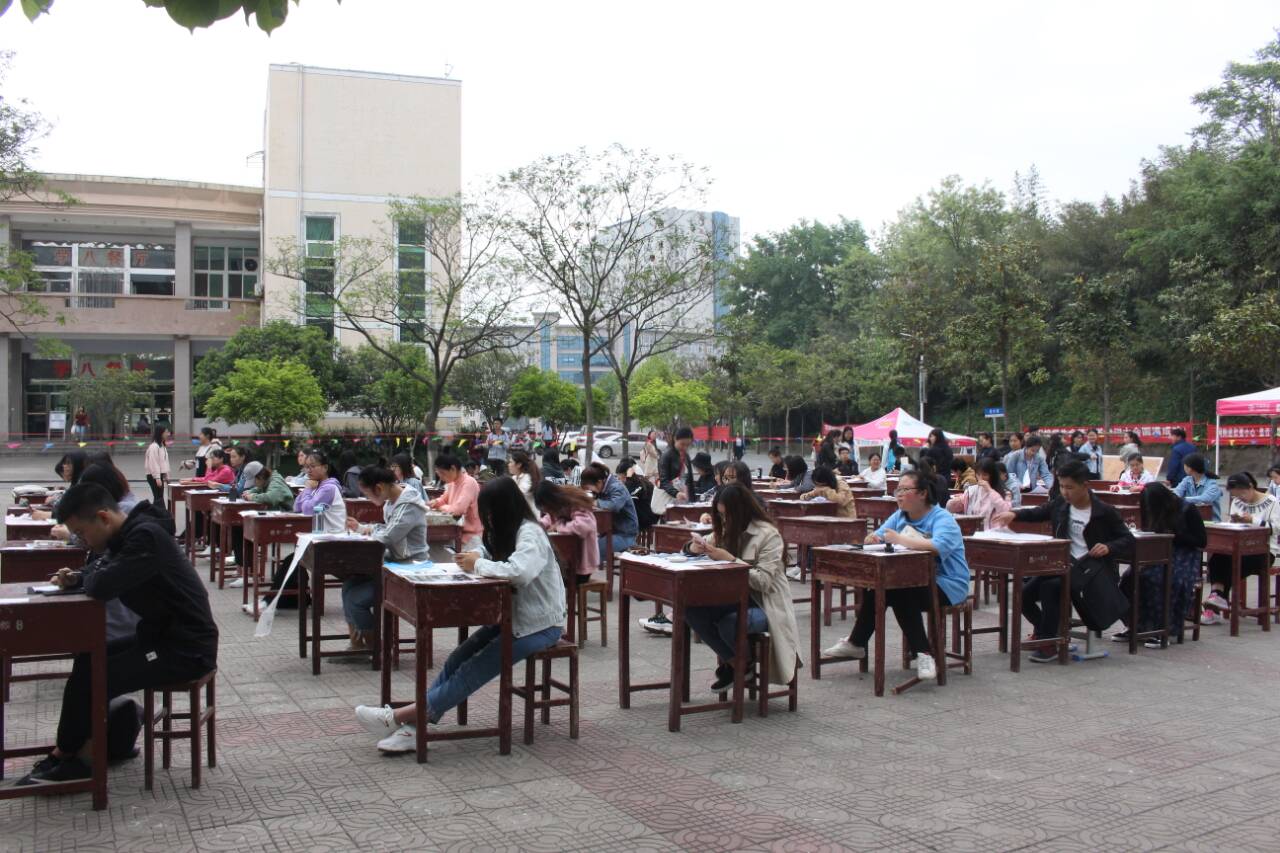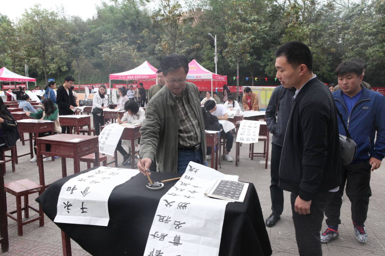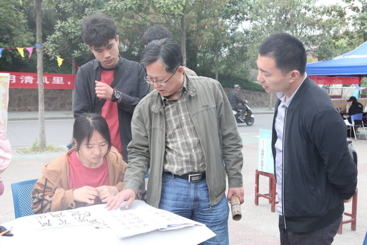 翰墨飘香入兰亭,书法染纸传千古。4月20日,由美术与设计学院主办、大学生书法爱好者协会、景明网、太阳成集团tyc151cc、文学院承办的第一届“兰亭杯”书法大赛在八餐小广场顺利举行。美术与设计学院党委书记刘根货、栗跃崇书法老师、太阳成集团tyc151cc张峰老师、文学院团委老师郑波亲临比赛现场并进行观摩指导。